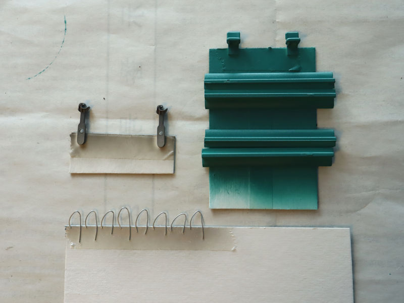 残っていた小物の塗装を行いました。自動連結器とロングシート、ロングシート両サイドの手すりです。
